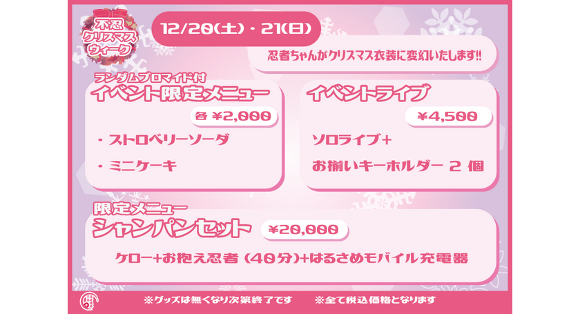 いつも忍者喫茶不忍カフェをご愛顧いただきまして、ありがとうございます。